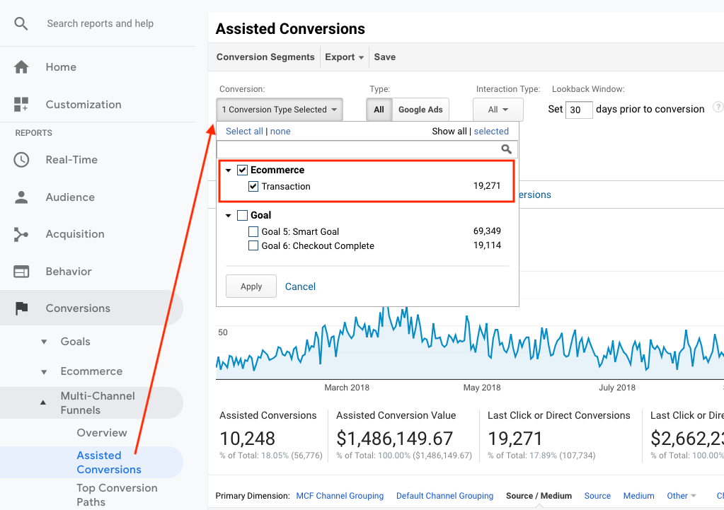 *不要过多地添加,但是MCF报告中有一个“回溯期”,默认为30天(标准来源/媒介为180天)。我们现在暂时跳过:)。