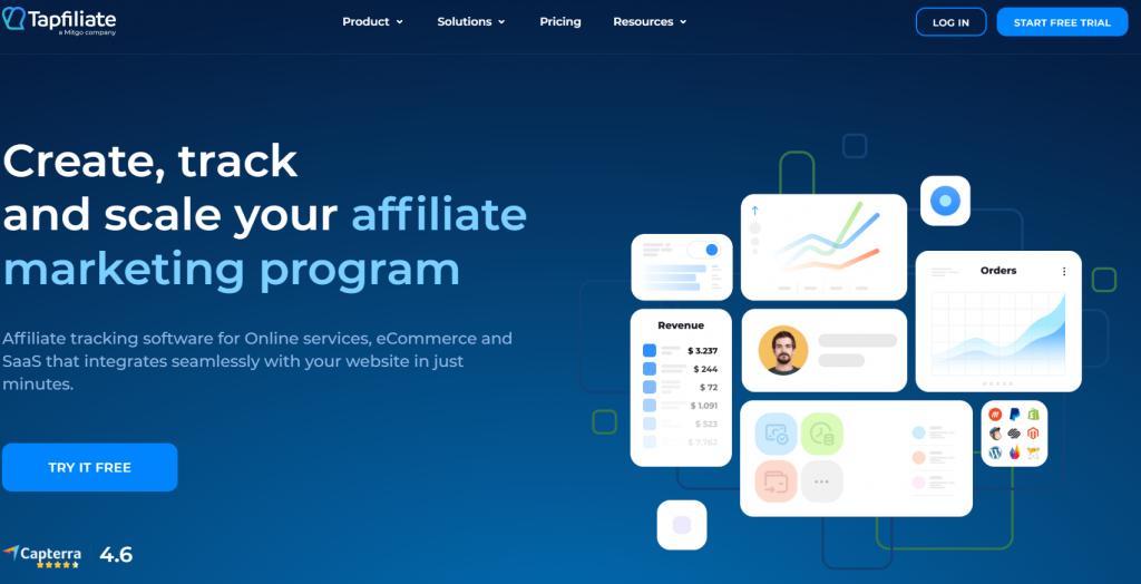 Tapfiliate 是一个完整的联属网络营销解决方案,使任何规模的企业都能够招募联属网络营销人员、跟踪绩效并获得洞察以促进销售。